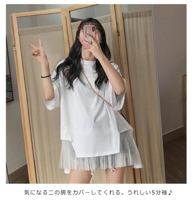 | 裾シフォンが甘すぎないフェミニンさをプラス 上手に体型カバーをしてくれる嬉しいtシャツの登場です! 気になる二の腕をカバーしてくれる。うれしい5分袖♪ 滑らかで伸縮性が良く、着心地が抜群です。 裾は個性的なシフォン切り替えデザイン、動き揺れるフレアシルエットも魅力的、気負わない大人カジュアルスタイルを演出。 | |