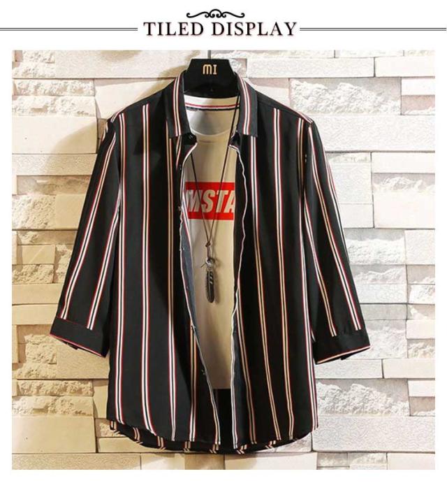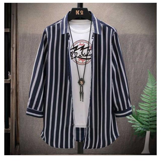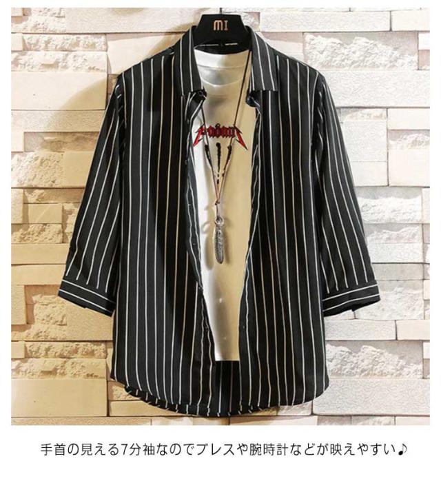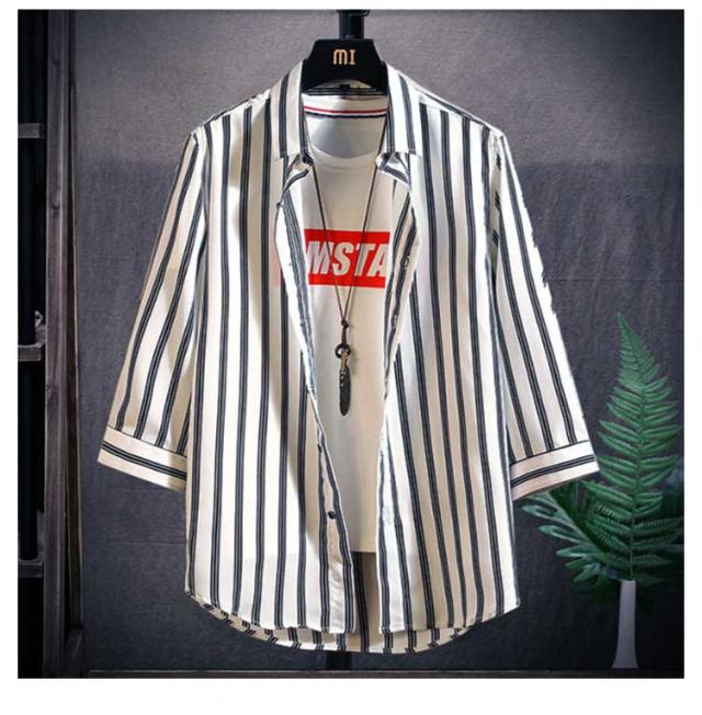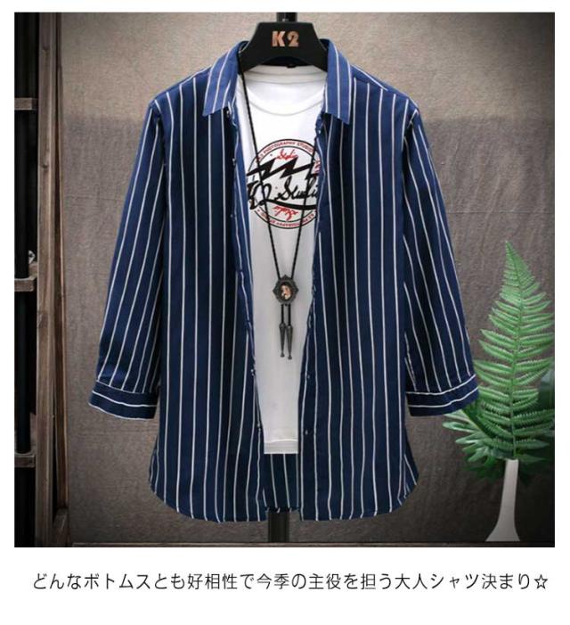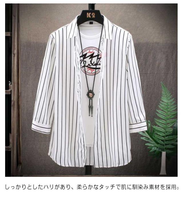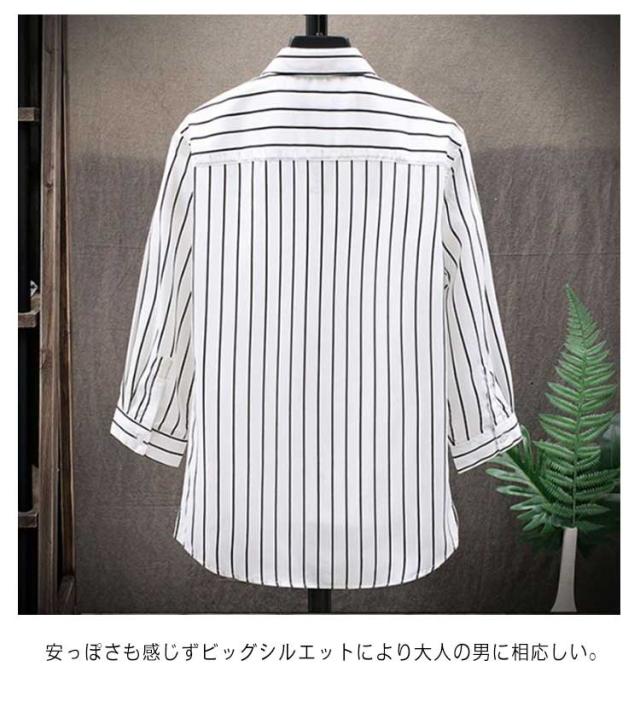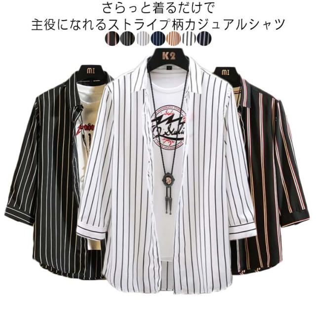メンズシャツ 春夏 ストライプ 5分袖 ブラウス シャツ カジュアルシャツ ストライプシャツ おしゃれ カジュアル 薄手 ひんやり 七分袖シャツ トップス ゆったり 体型カバー 羽織り 夏服 旅行 リゾート 大きいサイズ ギフト プレゼント 父の日 送料無料