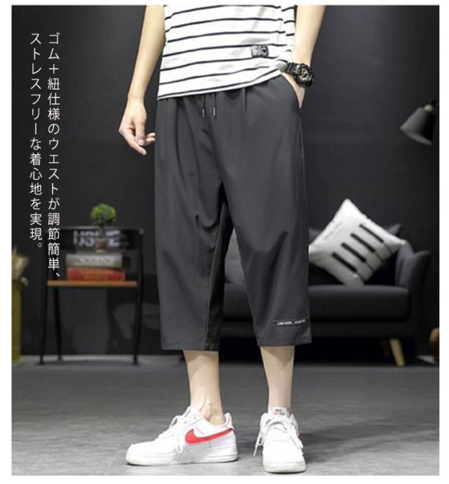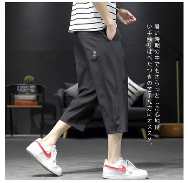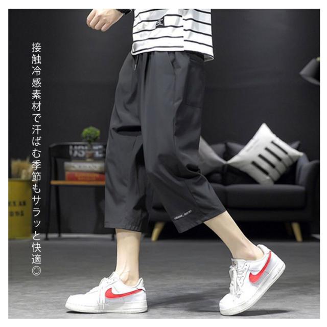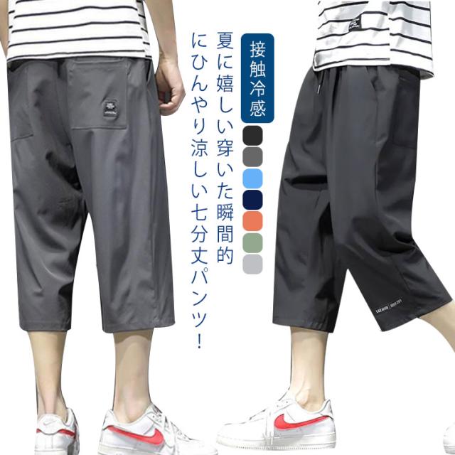 7分丈 パンツ メンズ クロップドパンツ 接触冷感 イージーパンツ 冷感 涼感 春夏 ワイドパンツ ロングパンツ 涼しい カジュアルパンツ ゆるパンツ ウエストゴム 無地 カジュアル ゆったり 体型カバー キレイめ お洒落 シンプル 大きいサイズ ボトムス ギフト 送料無料
