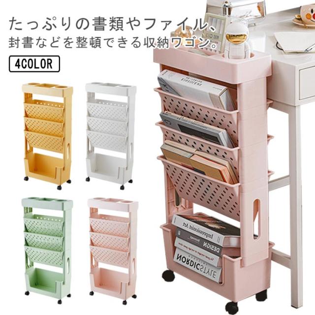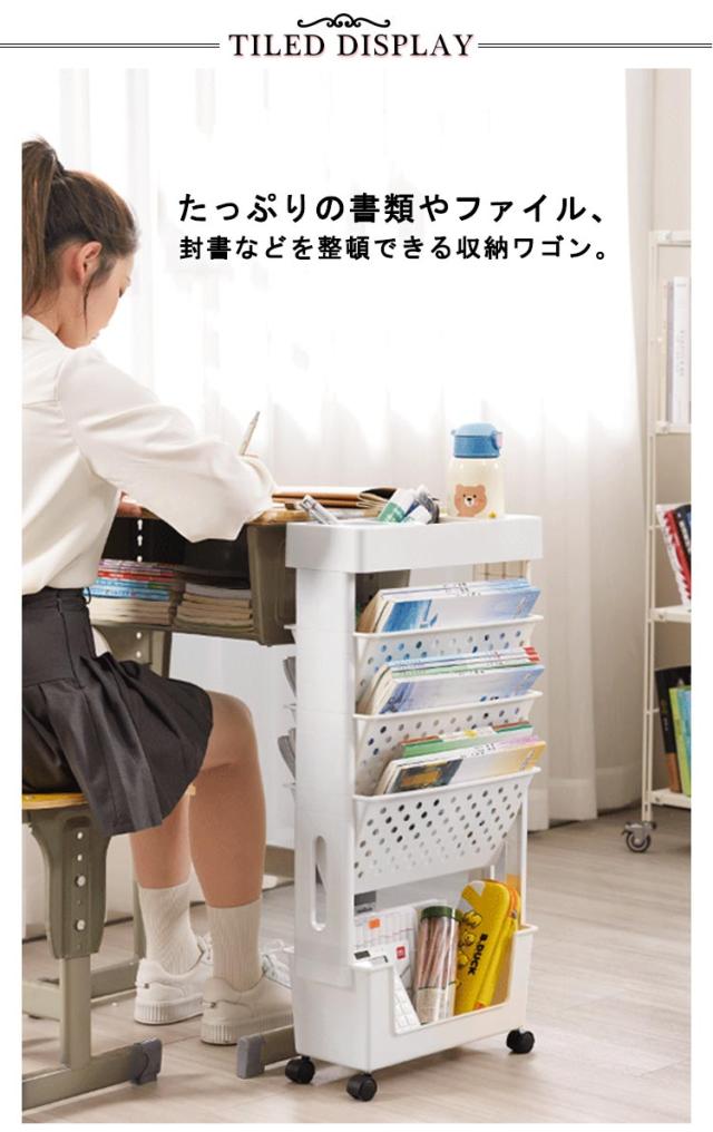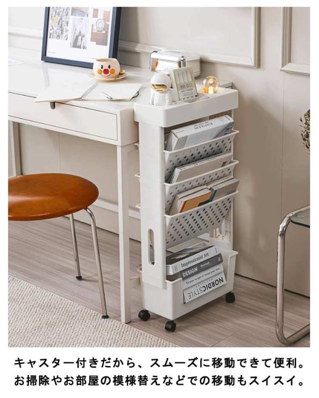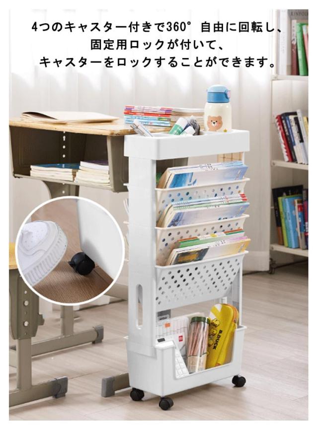 サイドワゴン キャスター付き 5段 大容量 本棚 書類ワゴン スリム 収納ラック サイドテーブル デスク収納 机下 収納 デスクワゴン スリム オフィス収納 デスクワゴン 可愛いサイドワゴン 漫画 雑誌 教科書 ファイル 省スペース 組立簡単