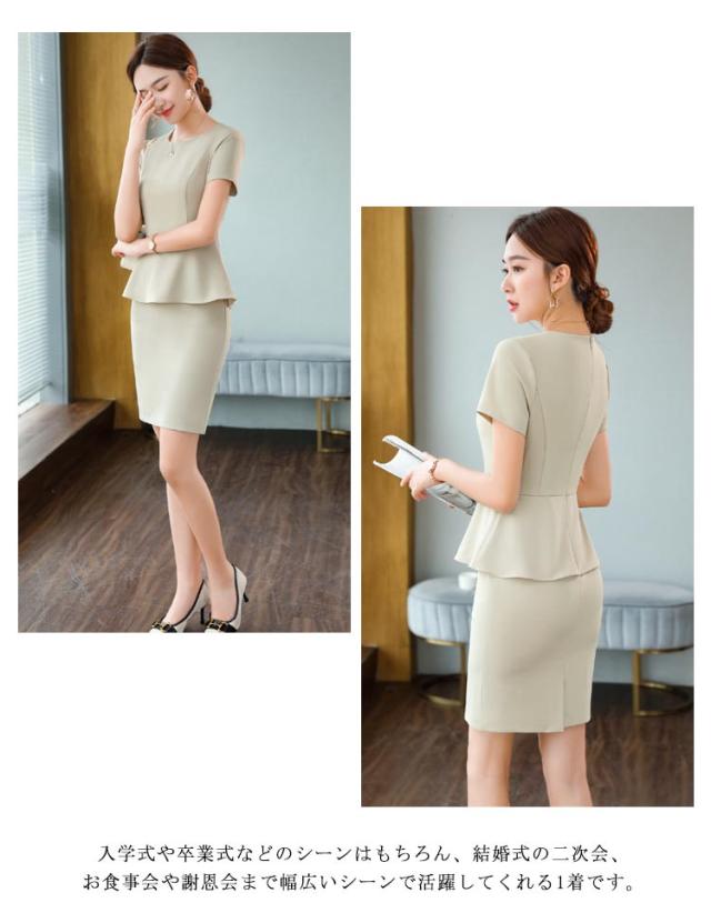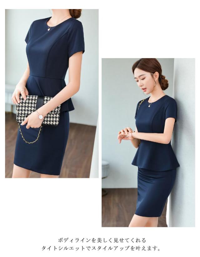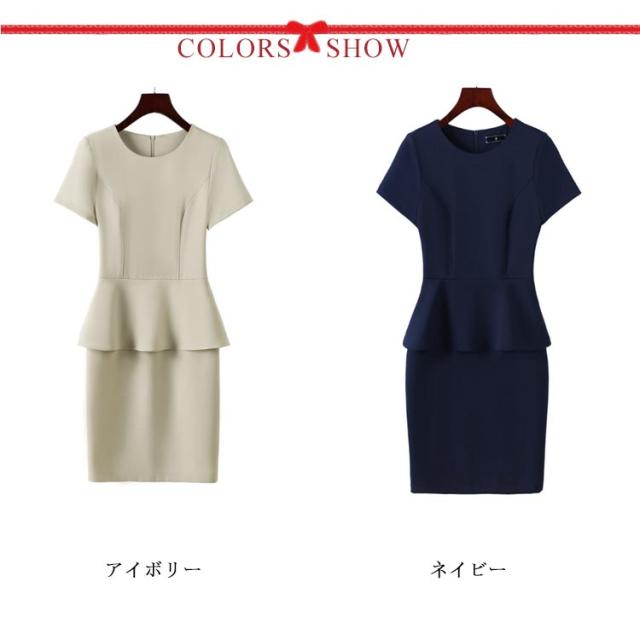 セレモニースーツ レディース 半袖 ワンピース フリル ママスーツ フォーマルスーツ 50代 40代 30代 フォーマル 春 夏 セレモニー ママ 入学式 入園式 卒業式 卒園式 結婚式 韓国風 ワンピーススーツ 単品 ネイビー アイボリー ストレッチ