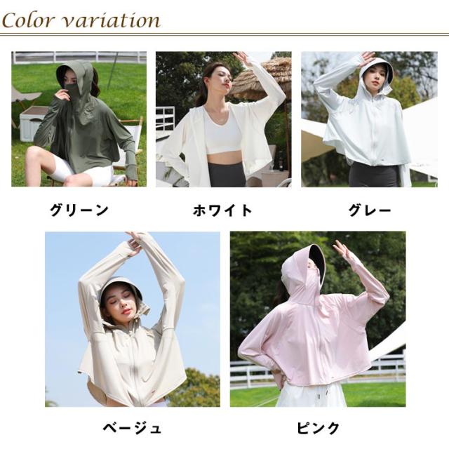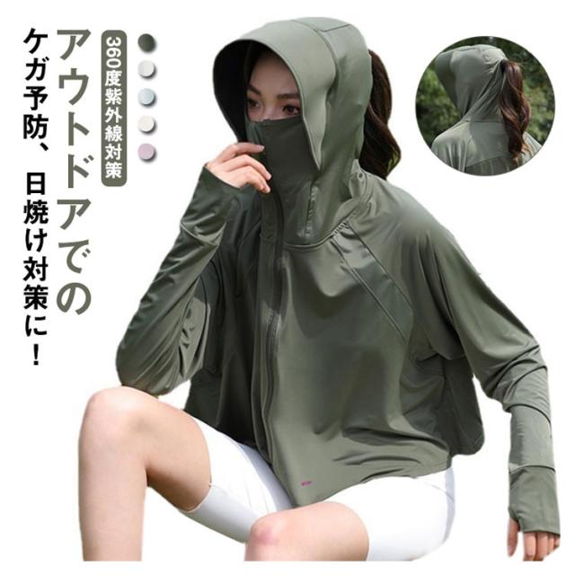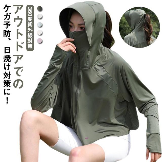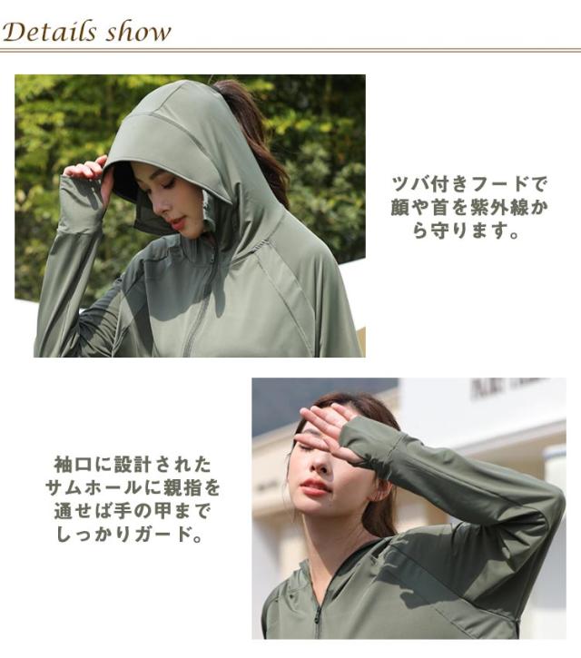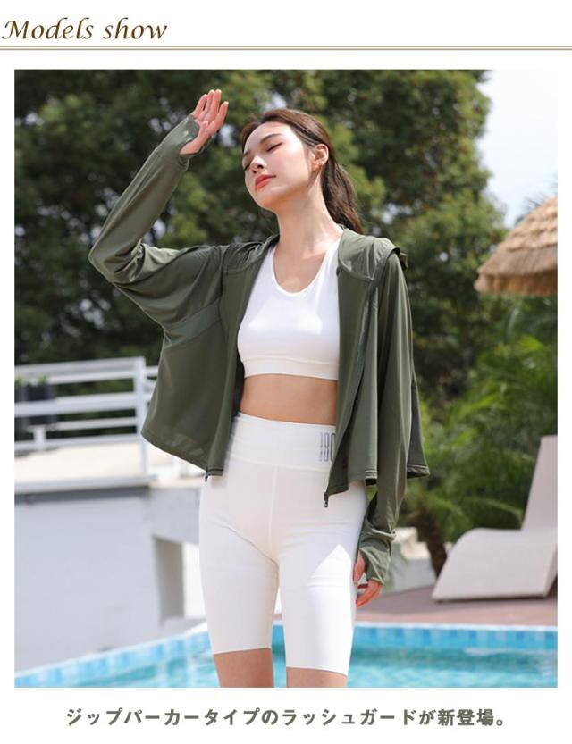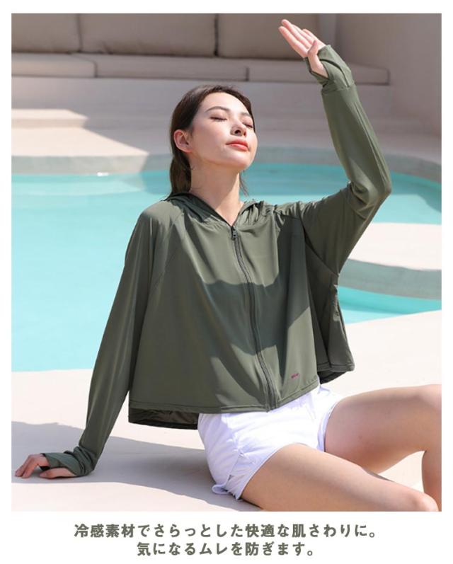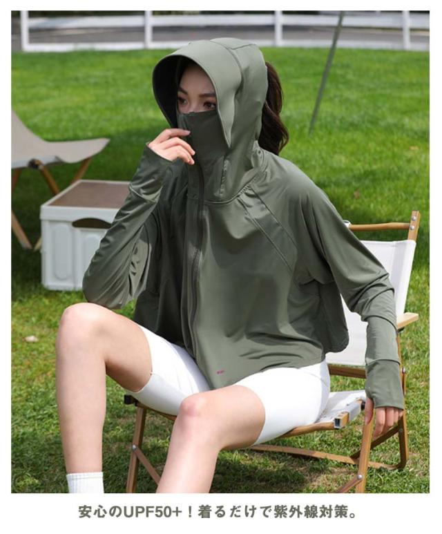 送料無料 UVパーカー ラッシュガード 接触冷感 涼しい UPF50+ レディース 日焼け止め 指穴 UVカット パーカー サンバイザー ジップアップ 首元 フード付き 薄手 ひんやり 吸水速乾 羽織 春夏 UV対策 日焼け防止 紫外線対策 通勤 ショート丈 動きやすい ストレッチ
