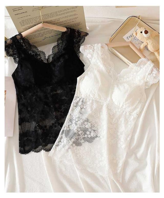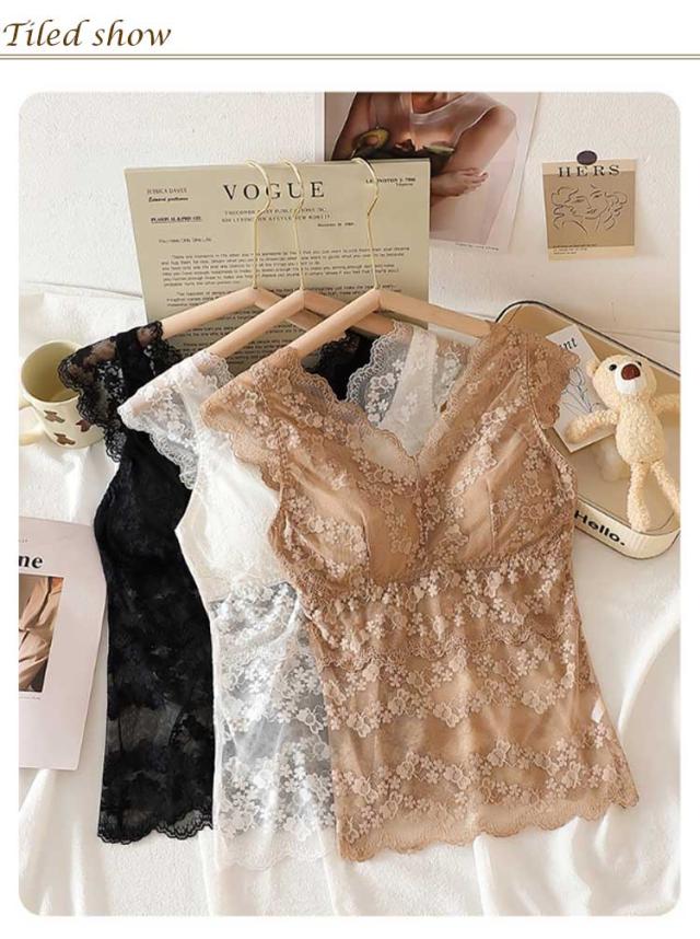 送料無料 タンクトップ 総レース 透かし 肌見せ カップ付きインナー キャミソール ブラ紐隠し インナー ノースリーブ チラ見せ シースルー レース 重ね着 ブラトップ セクシー Vネック 大人 可愛い シンプル 透け感 肌着 シースルー おしゃれ