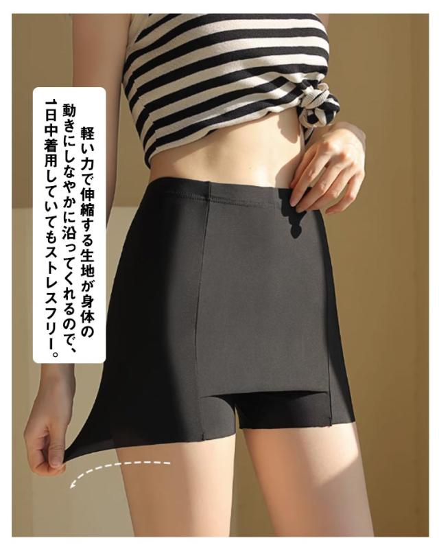 送料無料 Yラインカバー インナーパンツ 冷感素材 涼しい レディース ペチパンツ ペチコート スカート ストレッチ 伸縮性 レーヨン 接触冷感 透け防止 涼しい 二重パンツ ボトムス 女性 女子 夏 隠し 通気性