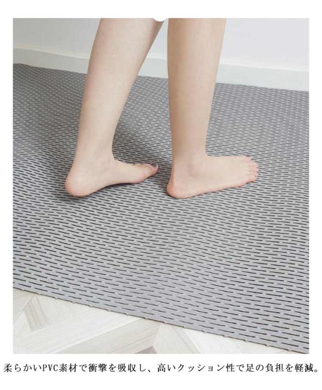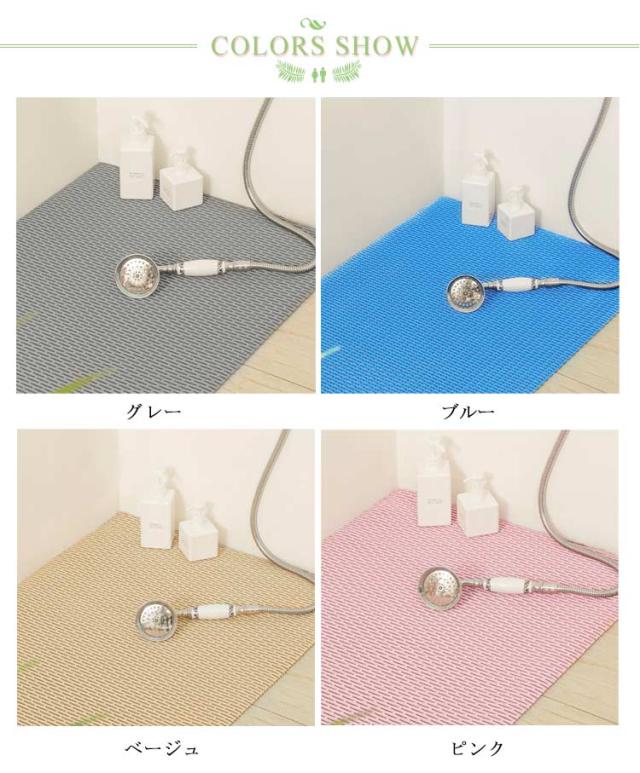 | 水はけがよくお手入れ簡単バスマット 排水穴があるから、水が溜まらず、風通しがよくなるため、乾きが早くなります。 柔らかいPVC素材で衝撃を吸収し、高いクッション性で足の負担を軽減。 裏面が粒子状で滑りにくく、転倒防止に!濡れた床でも滑りにくく高齢者やお子様も安全。 防カビ加工を施しているので清潔です。 ハサミなどで場所に合わせた大きさにカットして使用できます。 お掃除や後片付けが簡単で、浴室だけではなく、台所やトイレ、プール、温泉など場所にも使えます。 | |