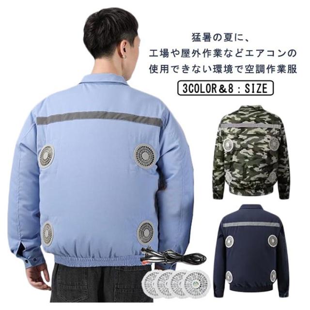 空冷服 作業服 セット ファンジャケット 長袖 ファン付き作業服 ファン4個 扇風機服 バッテリーなし 作業着 日焼け防止 ファン付き作業着 ウェア ワークウェア 薄型 男女兼用 メンズ レディース 夏 熱中症対策 UVカット 撥水加工 通気性 釣り 涼しい 暑さ対策