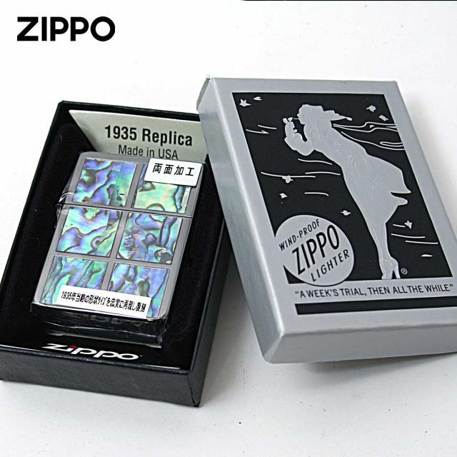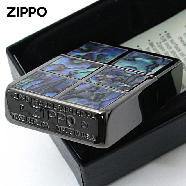 Zippo ジッポライター 1935レプリカ シェル 貝 インレイ 象嵌 スクエア 両面加工 ブラックニッケル Replica Square Shell NB メール便専用商品
