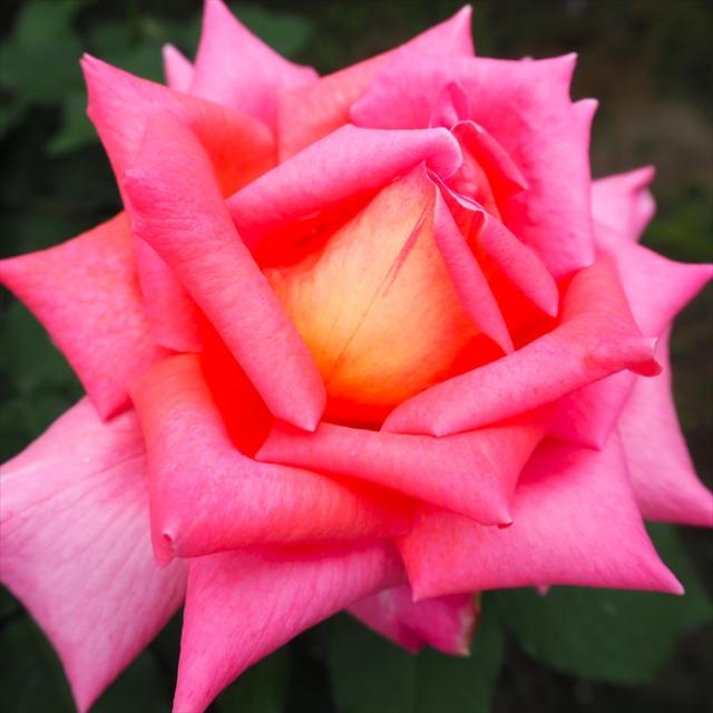 花弁の表がローズレッド、裏弁が鮮黄色のリバーシブルになる複色花。