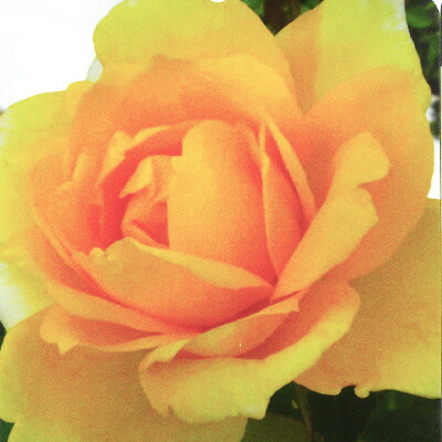 少し赤みを帯びた濃黄色の整った半剣弁高芯咲き。