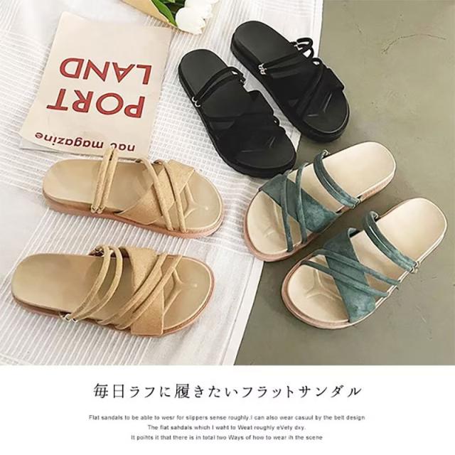 【水曜日まで!10%クーポン配布中】 サンダル レディース サマー ミュール ローヒール ビーチサンダル 滑り止め 歩きやすい 通勤通学 疲れない フラット 軽量 おし