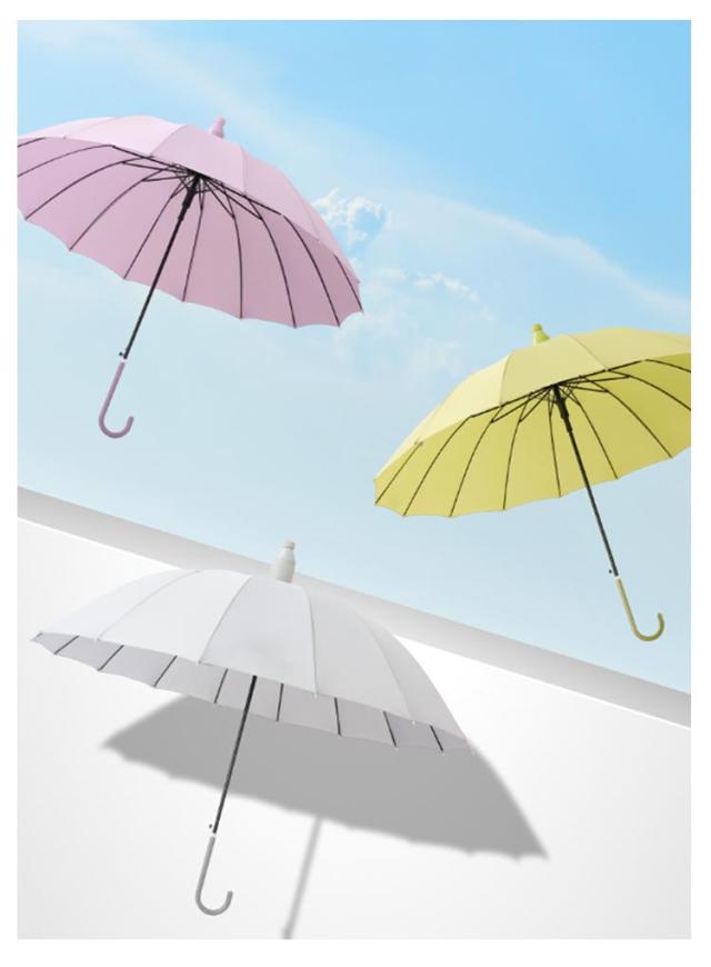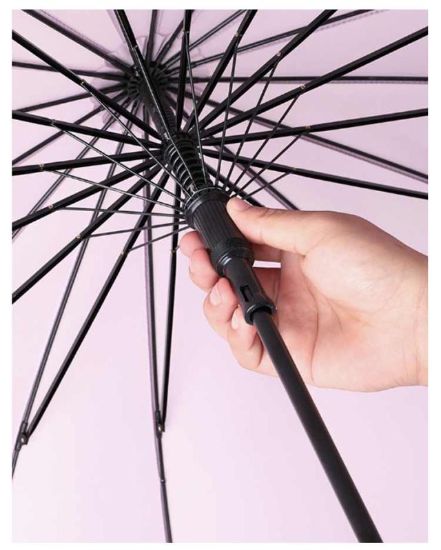 | 【撥水性が抜群な210T超高密度生地を採用】190T生地より、撥水性がもっと優れる210T超高密度ポリエステル生地を採用し、210T超高密度生地にテフロン加工に施されて、撥水性が抜群! 【新型軽量で丈夫なグラスファイバー16本傘骨を採用】強風にあおられても傘がひっくり返りにくい。16本骨でありながら、新型軽量グラスファイバー素材を追求したからこそ、 一般的な長傘レベルの負担のない重さを実現。 【軽量で錆びにくい中棒】軽量の空芯鉄製中棒を使用、中棒の表面に優れるメッキ技術を行っており、丈夫で錆びにくく、長持ちを可能にしました。中棒に下はじきがないので、手が傷つくことを気になる必要がない! 【使い勝手が優れる手元】心地よい手触りの滑り止めハンドルはJ型のデザインを採用、傘をさす時に握りやすく、持ち運ぶ時に腕に掛けやすく、使わない場合に傘立てに掛けやすく、ハンドルー体型なので袖口などに引っかからず押し心地もスムーズ。 | |