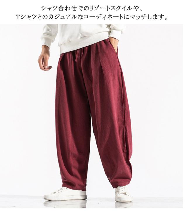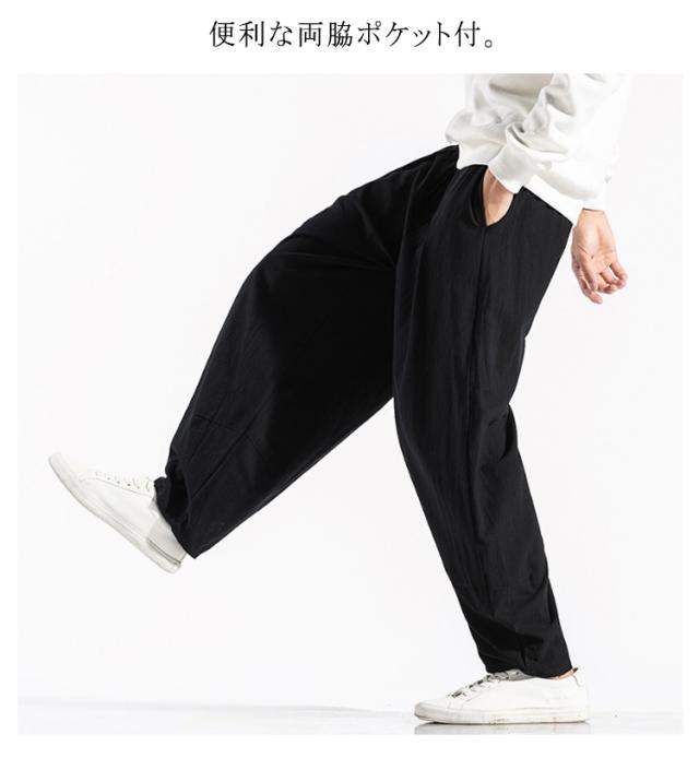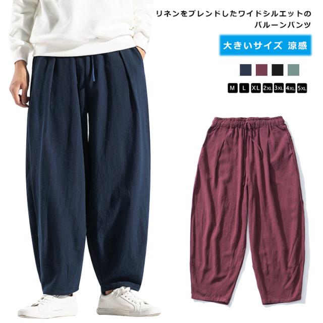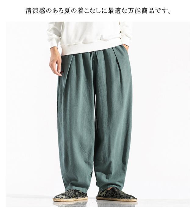 ワイドパンツ メンズ 麻 ゆったり リネンパンツ ボトムス イージーパンツ 綿 薄手 サルエルパンツ 亜麻 ポケット付き リラックスパンツ 大きいサイズ 父の日 カジュアル 無地 プレゼント 春 夏 ウェストゴム