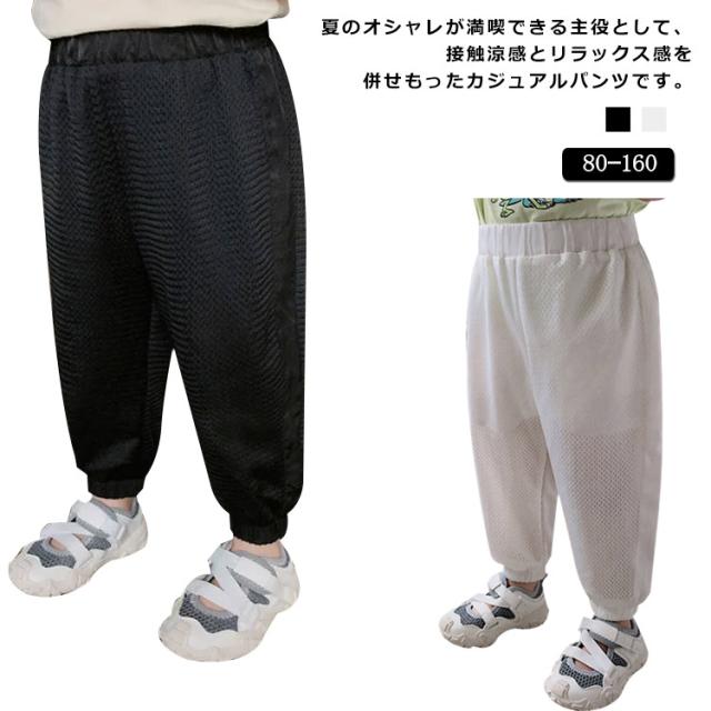 中学生 9分丈 ジュニア ロングパンツ 子供パンツ 夏 長ズボン 通園 パンツ 子供服 カジュアルパンツ メッシュ 薄手 ロングパンツ ゆったり ウエストゴム 裾ゴム 虫よけ 送料無料 通学 小学生 アイスシルク シンプル 涼しい 男の子 黒 90 100 110 120 130 140 白