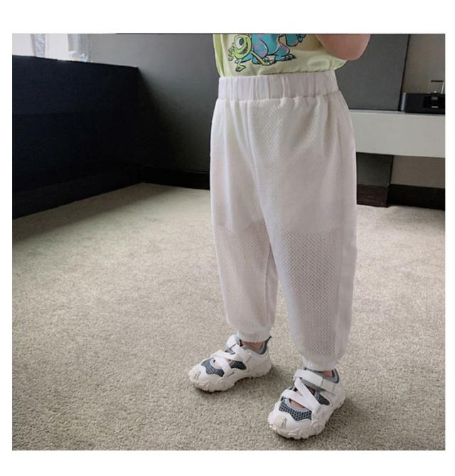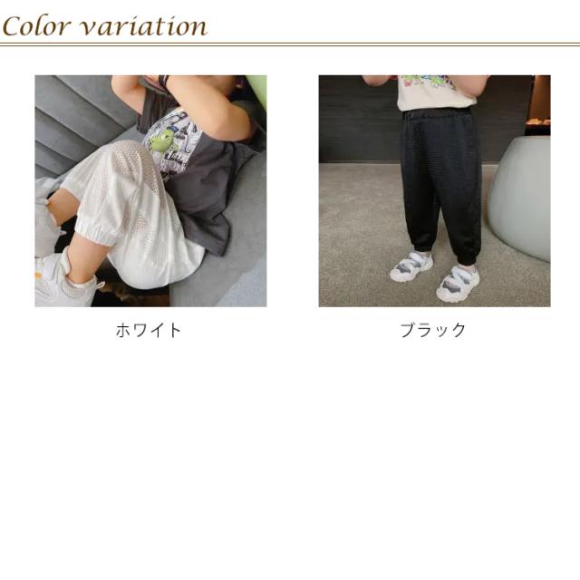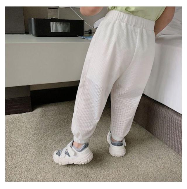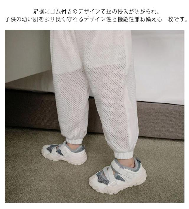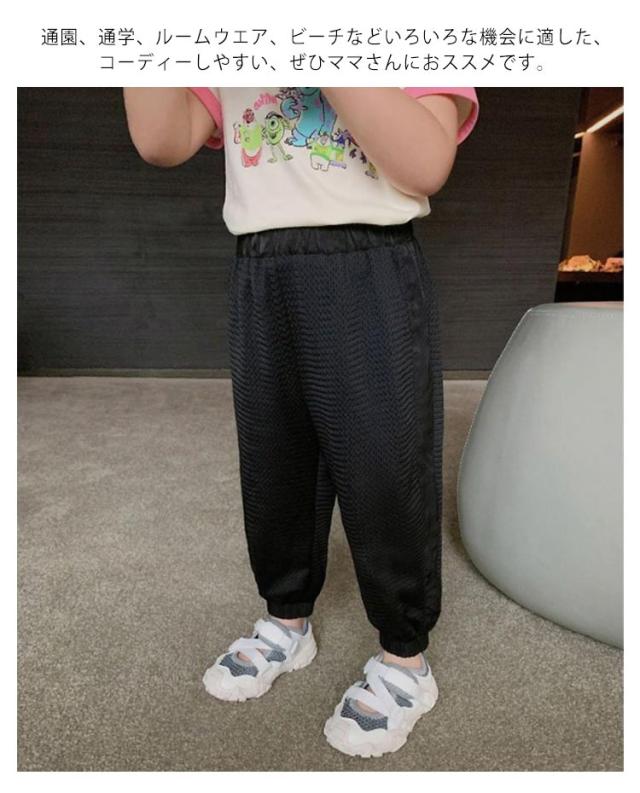 | 夏のオシャレが満喫できる主役として、接触涼感とリラックス感を併せもったカジュアルパンツです。 通気性抜群なメッシュ生地だから真夏でも蒸れずに、いつも快適な着心地です。 足裾にゴム付きのデザインで蚊の侵入が防がられ、子供の幼い肌をより良く守れるデザイン性と機能性兼ね備える一枚です。 通園、通学、ルームウエア、ビーチなどいろいろな機会に適した、コーディーしやすい、ぜひママさんにおススメです。 | |