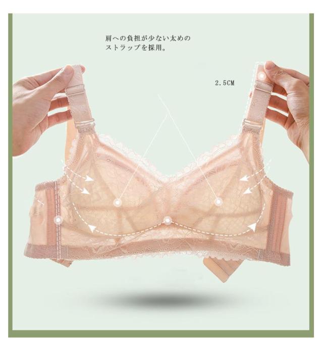 2枚セット 送料無料 ブラジャー 胸を小さく見せるブラジャー 総レース ブラ 胸が小さく見える レースブラ ノンワイヤーブラ 薄手 垂れ防止 おしゃれ 脇肉スッキリ 着痩せブラ かわいい 脇高ブラ
