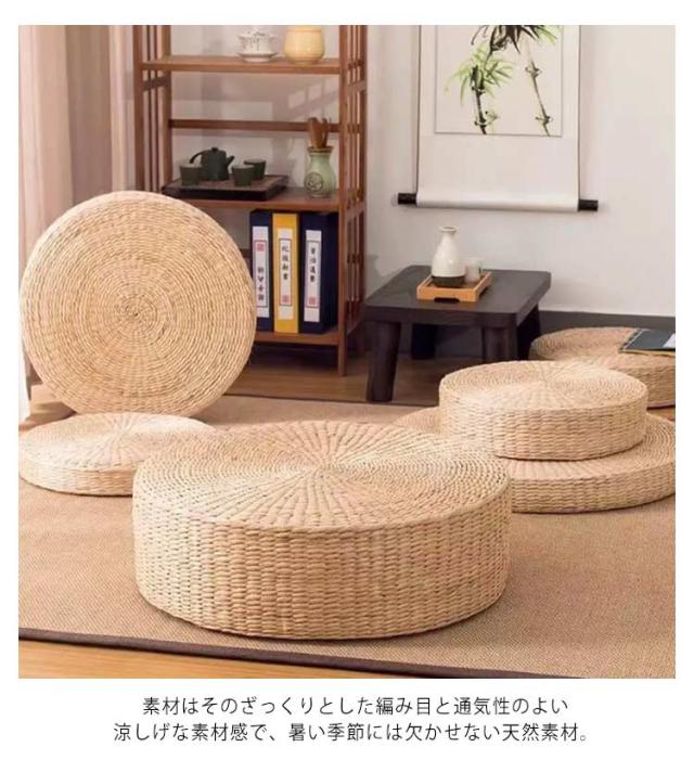 通気性 座り心地 座布団 クッション 坐禅用 インテリア飾り 円形 い草 和室 草編 フロアクッション 藤編 直径45cm/高さ10cm 座禅を組む インテリア 座蒲 わら 座禅布団 おしゃれ くさき 円座クッション フロアクッション