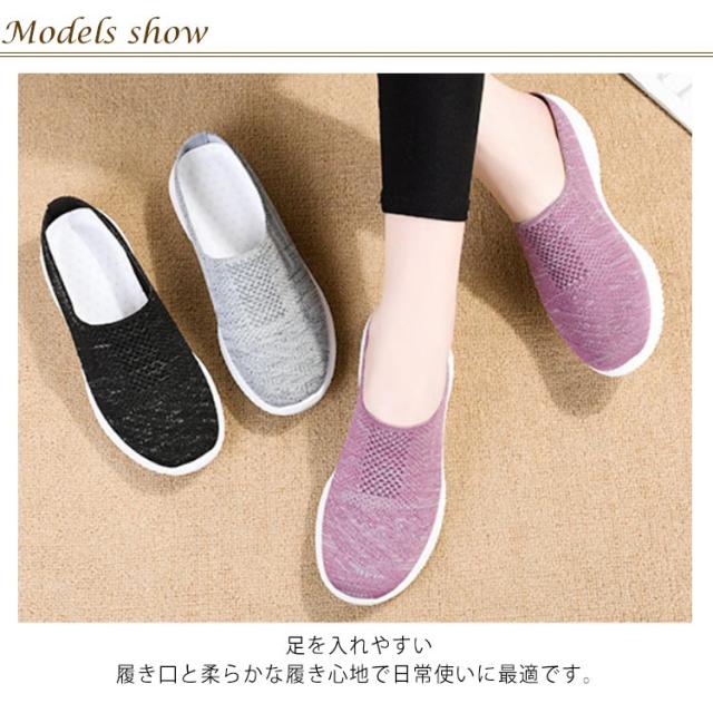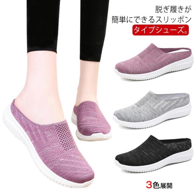 レディース 送料無料 かかとなし 軽量 靴 母の日 ニットスリッポン 中高齢者靴 ウォキングシューズ 軽い スリッポンスニーカー ナースシューズ 紐なし 看護師 お母さん 履きやすい サボ サンダル かかとなしシューズ スリッポン