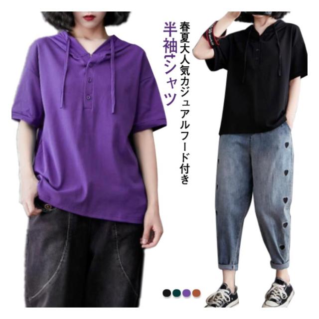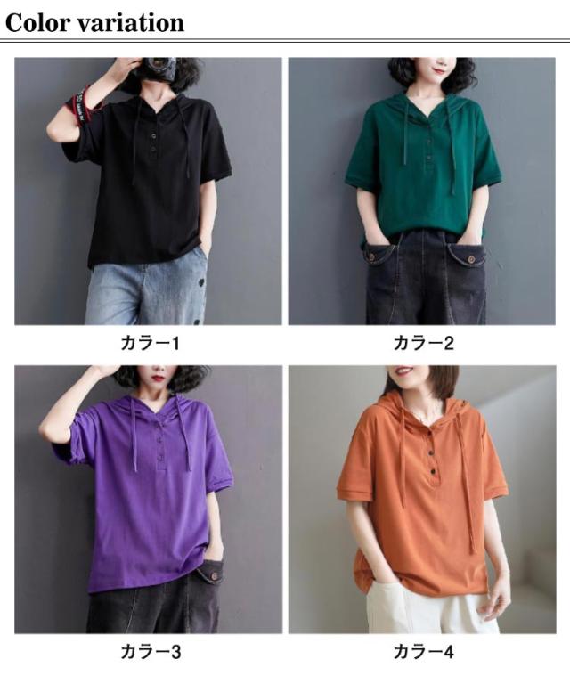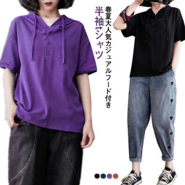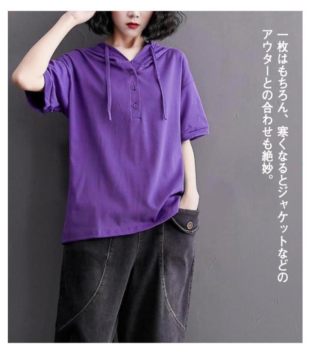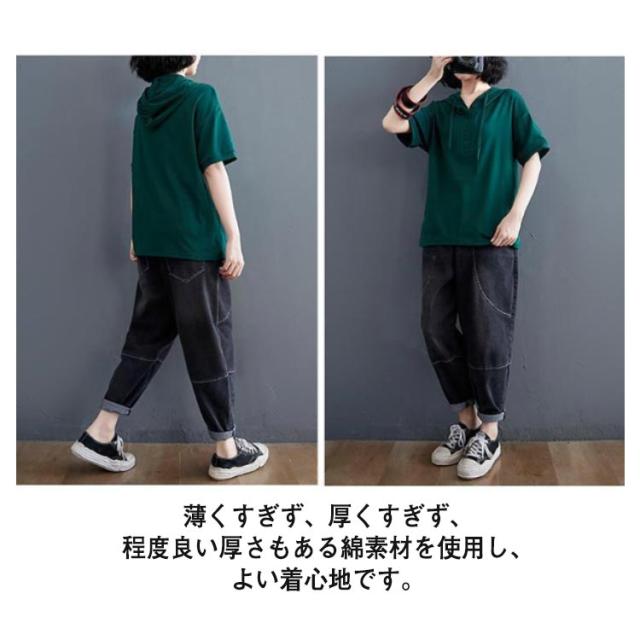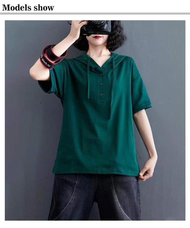 半袖パーカー パーカー レディース プルオーバー パーカー トップス 3XL 夏服 フード付きtシャツ tシャツ 半袖 薄手 フード付き 無地 夏 夏物 大きいサイズ 綿 シンプル お洒落 ゆったり L XL 2XL 半袖