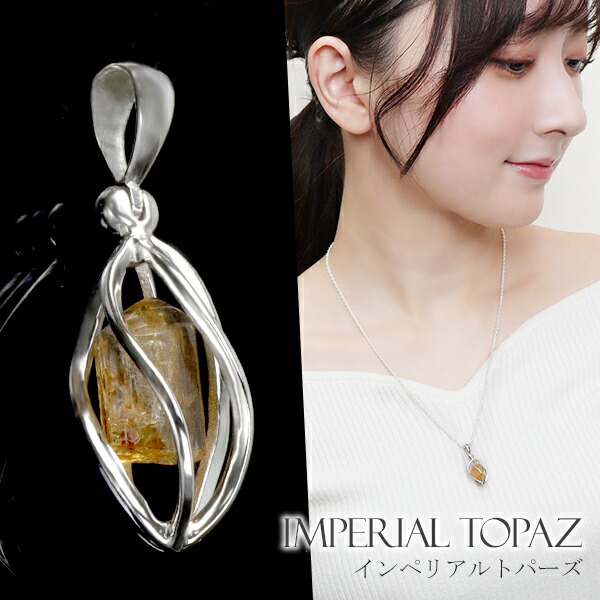 インペリアルトパーズ シルバー ペンダントトップ 原石 入り スクリュー ケージ チェーンなし 11月 誕生石 天然石 パワーストーン レディース 女性