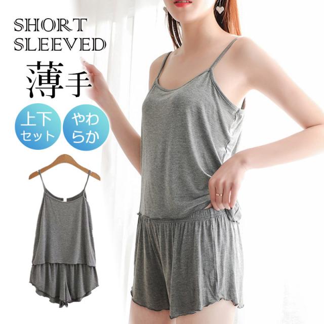 パジャマ ルームウェア レディース 上下セット 袖なし 半ズボン 薄手 サテン 夏 やわらか 部屋着 上下セット 涼しい 部屋着