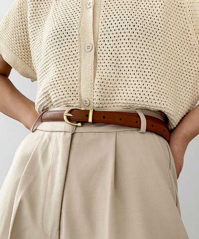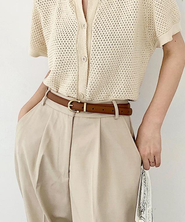 細めのベルトは、コーディネイトの幅が広がり、1つ持っていると重宝するアイテム!