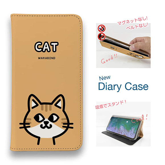 スマホケース 手帳型 ベルトなし マグネットなし iPhone17 Pro Max iPhone Air iPhone16e Pro Max 16 Plus 15 Pro Max 14 Plus Xperia 10 VII Galaxy AQUOS Pixel10 Pro XL ワカボンド WAKAMAKAシリーズ 猫のチャトラニャ