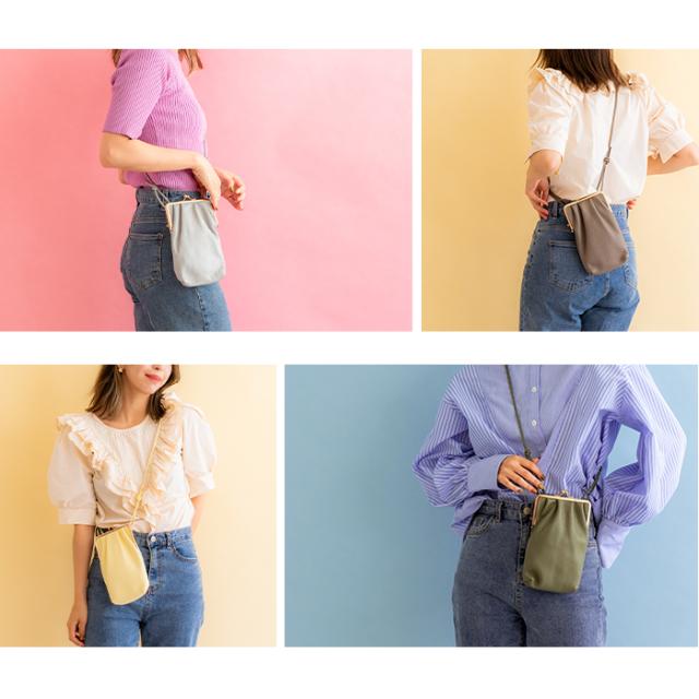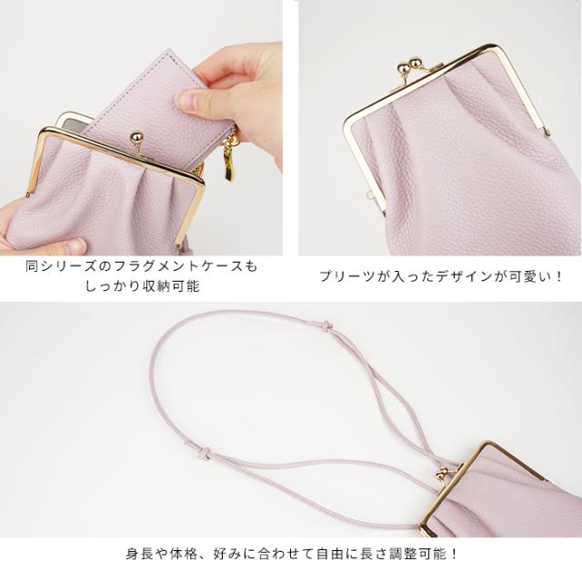 がま口スマホショルダー スマホポシェット スマホポーチ 本革 イタリアンレザー popful 母の日 ラッピング ギフト プレゼント
