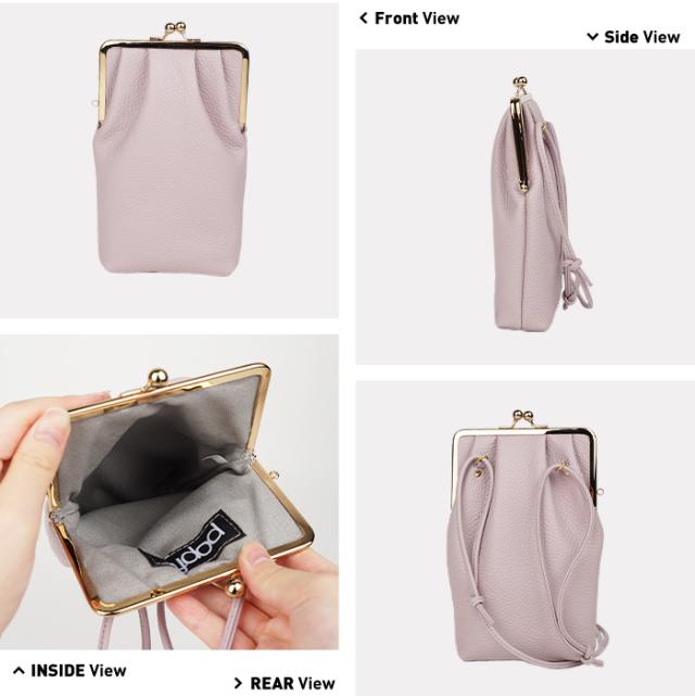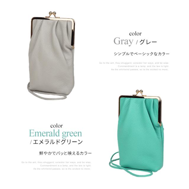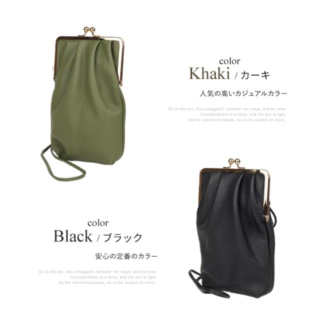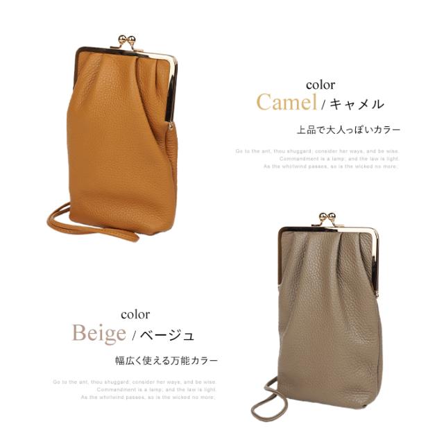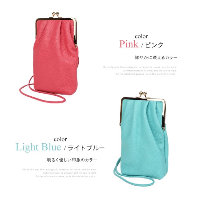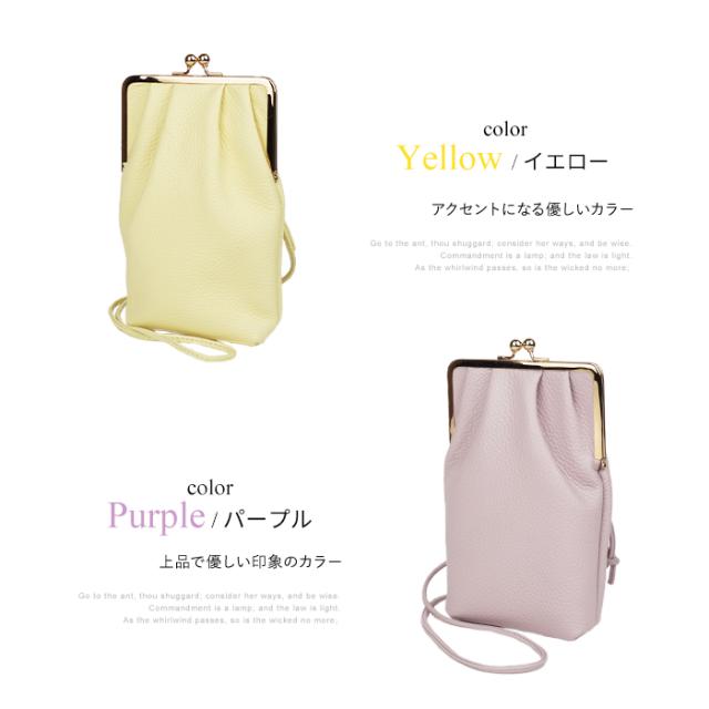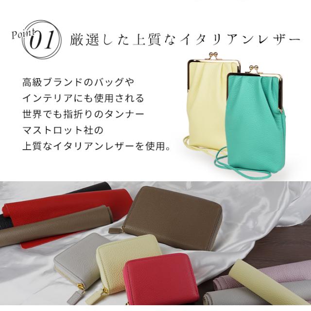 上質なイタリアンレザーを使用したカラフルながま口スマホポーチ。