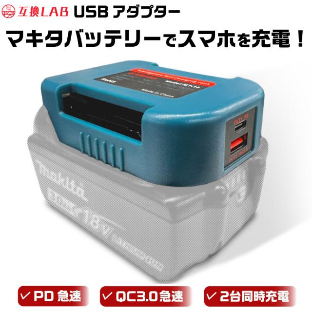 MAKITA バッテリー USB アダプター ベルトホルダー 18V 互換LAB 互換ラボ 互換バッテリー 対応 急速充電 スマホ PC タブレット PD QC 3.0 パワーデリバリー クイックチャージ