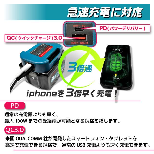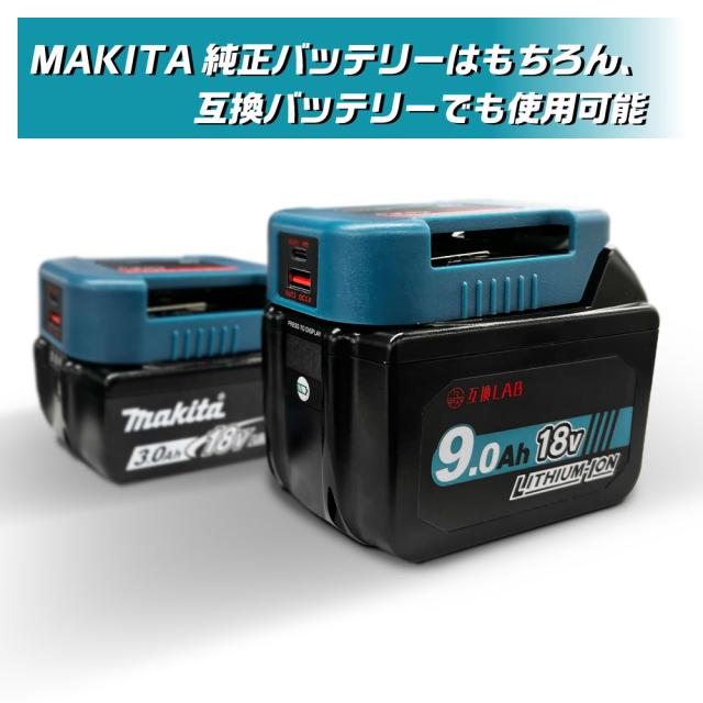MAKITA バッテリー USB アダプター ベルトホルダー 18V 互換LAB 互換ラボ 互換バッテリー 対応 急速充電 スマホ PC タブレット PD QC 3.0 パワーデリバリー クイックチャージ