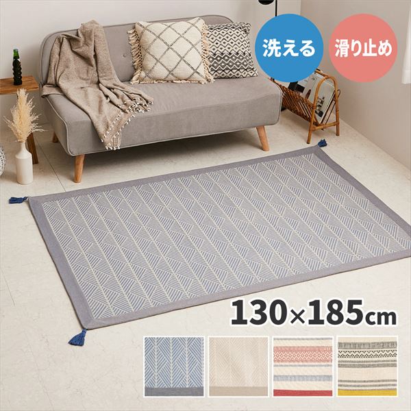 インド綿 綿100% 洗えるラグ タッセル付き 1.5畳相当 長方形 130×185cm 夏用ラグ ラグマット カーペット カラフル センターラグ 柄 ボーダー 幾何学 北欧 ナチュラル シンプル レトロ 西海岸 ホットカーペット対応 リビングラグ 萩原 【送料無料】