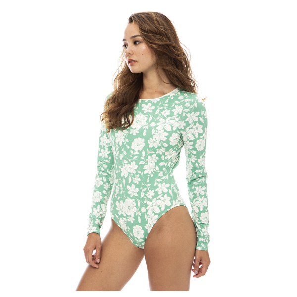 | | レトロなフローラル柄をあしらったラッシュガード。ざっくりと開いたバックデザインが女性らしい雰囲気を演出してくれます。背面の中央にはさりげなくブランドロゴが刺繍されています。リサイクルナイロンを使用したストレッチ入り素材で締め付けが少なく、動きやすいのもポイントです。サーフィンではもちろん、ショーツなどと合わせればめくれ上がらず思いっきり水遊びも楽しめます。 |
