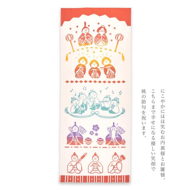使うほどに柔らかくなる生地に、色と色が混じり合う表現ができる注染でゆるかわなお雛さまたちがデザインされています。