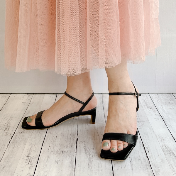 華奢なストラップが女性らしいシックなデザインのサンダル。