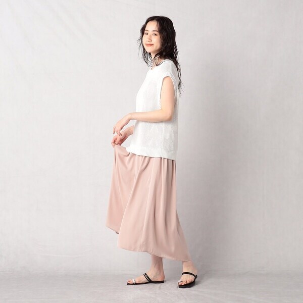 トップスのニットは、セットのワンピ−スとはもちろん、短めの着丈で様々なボトムと相性が良く、インナーにはTシャツやシャツなどを合わせてコーディネートできます。