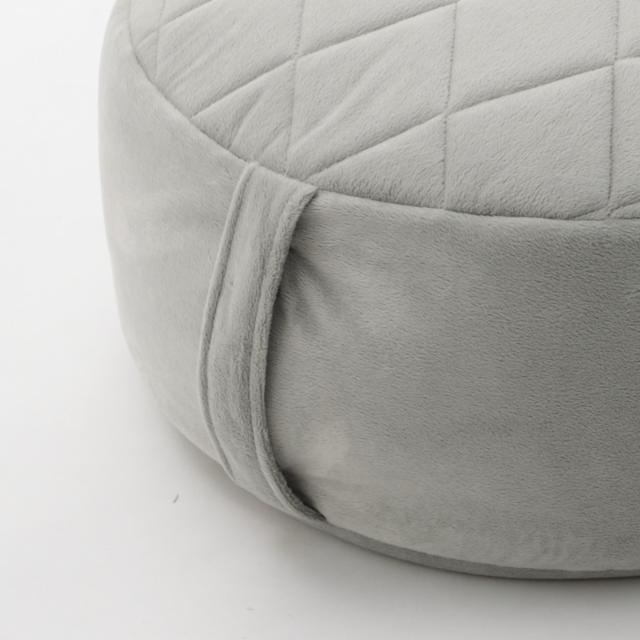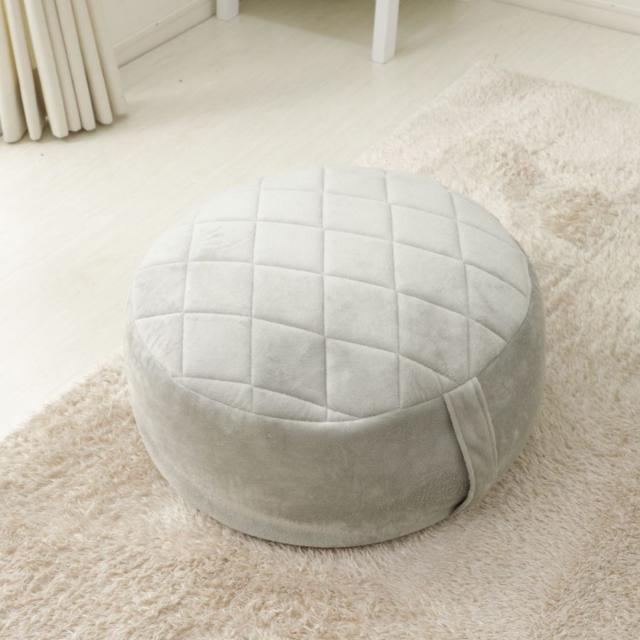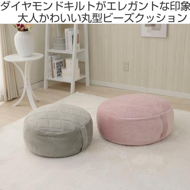 上面のダイヤモンドキルトデザインがエレガントな雰囲気を演出する、丸型ビーズクッションです。テレビや読書をする時のフロアクッションとしてもお使いいただけます。ビーズがしっかりと詰まっているので、沈み込み過ぎず、しっかりと座ることができます。