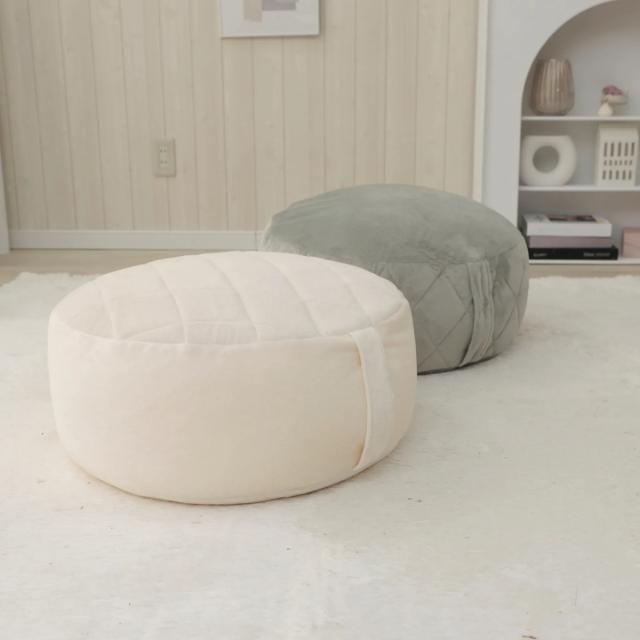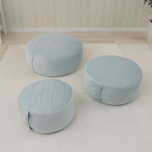 ビーズクッション 丸型 Lサイズ 表面キルト 持ち手付 ( クッション 直径52cm 円 座面 ソファ リビング ラウンド 日本製 大きい リラックス 丸 座布団 オットマン 座椅子 持ち運び ふわふわ スツール ビーズ ふかふか お洒落 )