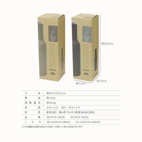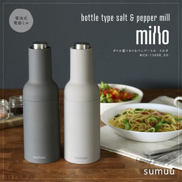 在庫処分 ボトル型ソルト&ペッパーミル マクロス millo ミルオ sumuu スムウ スモークグレー MCK-136SG