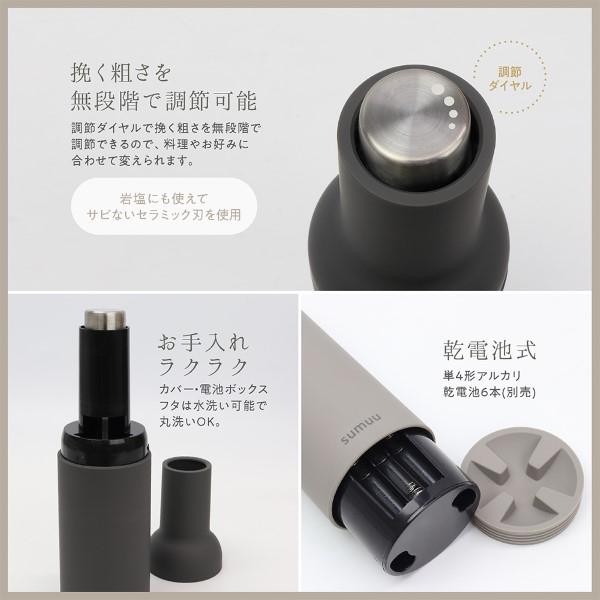 岩塩・胡椒・花椒に対応しており、粒の粗さを無段階で調節可能。