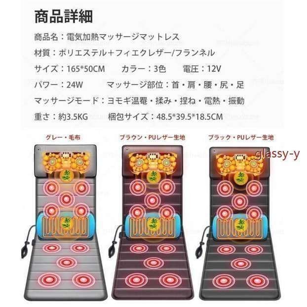 全身マッサージマットレス 折り畳み 加熱 30個のもみ玉 揉み捏ね リモコン付き マッサージシート マッサージ機 寝ながらマッサージ 家庭用職場用 健康グッズ