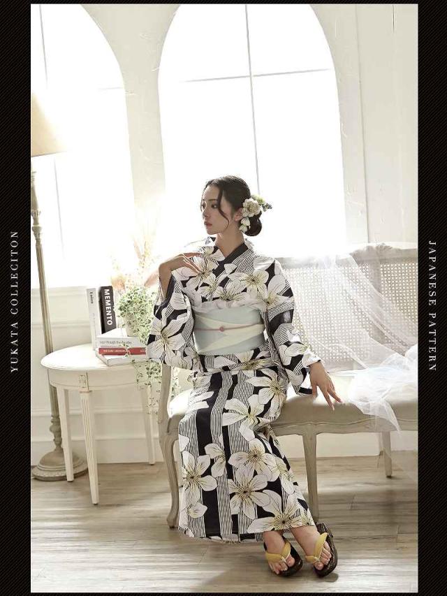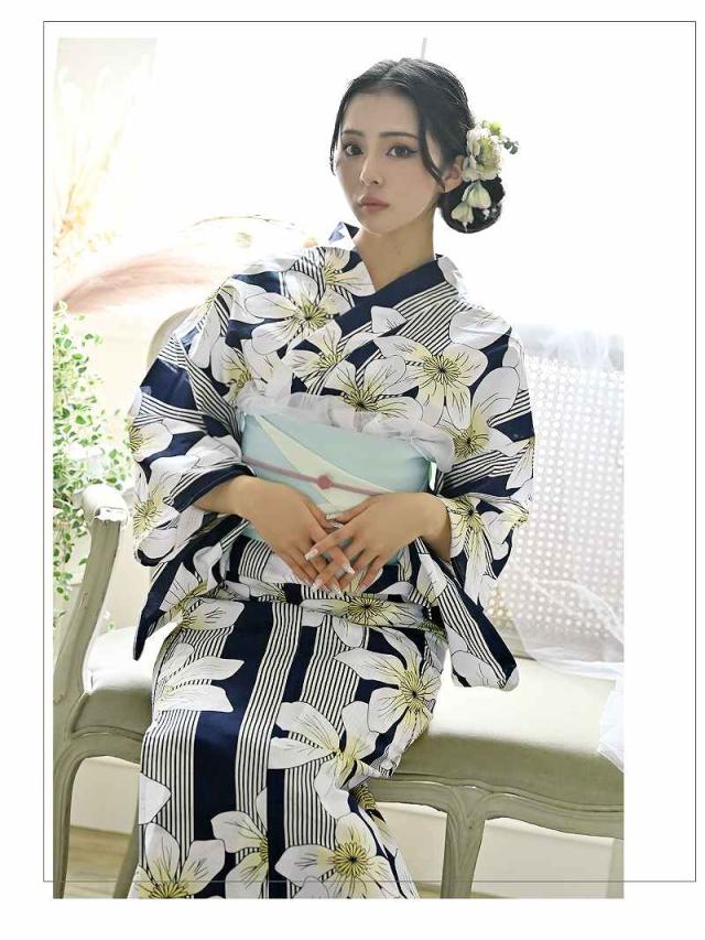 ☆浴衣・半幅帯の2点セットで届いてすぐ着用可能な女性用浴衣♪