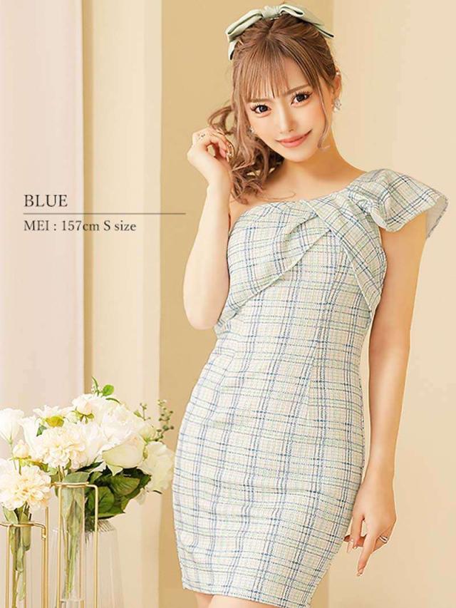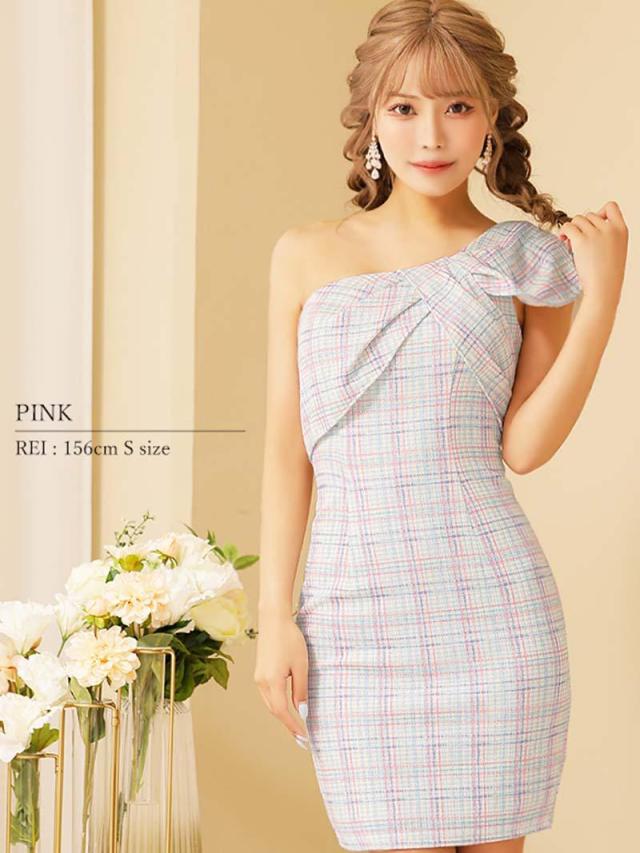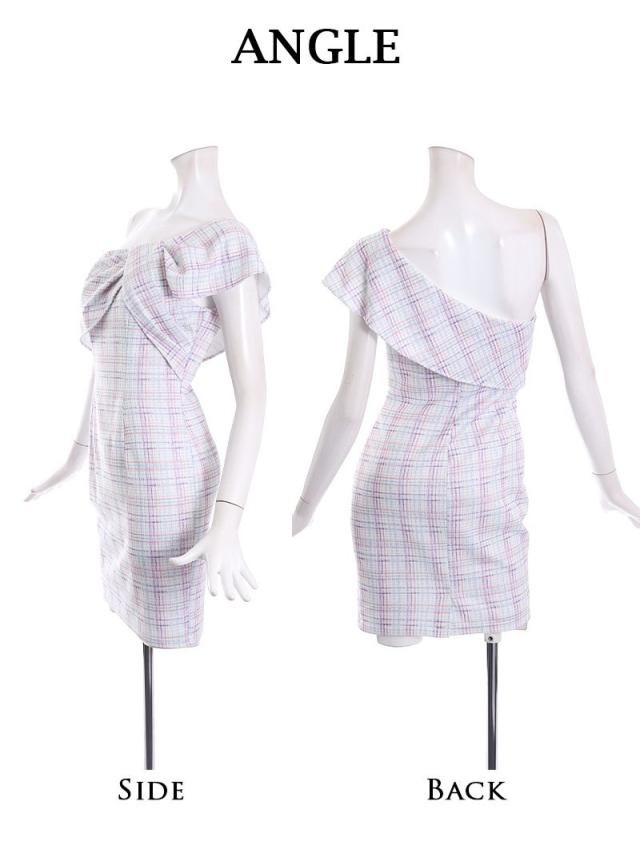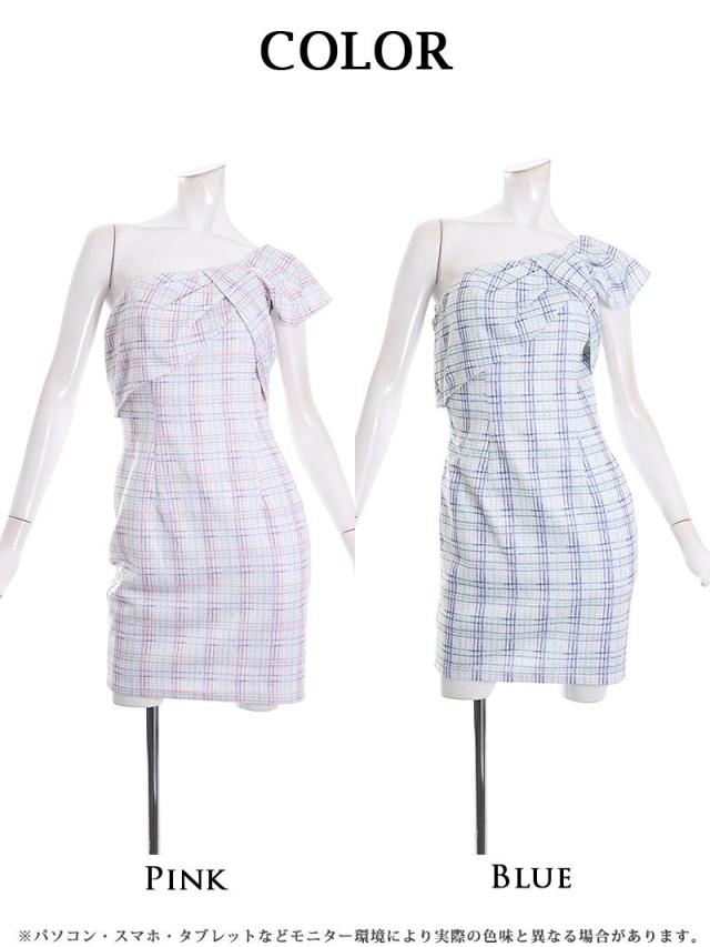 ☆ニュアンスチェック柄×リボンモチーフのワンショルダーがCUTEながらにSEXYさもプラスする愛らしいタイトミニドレス♪
