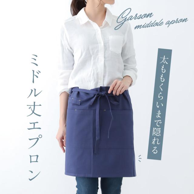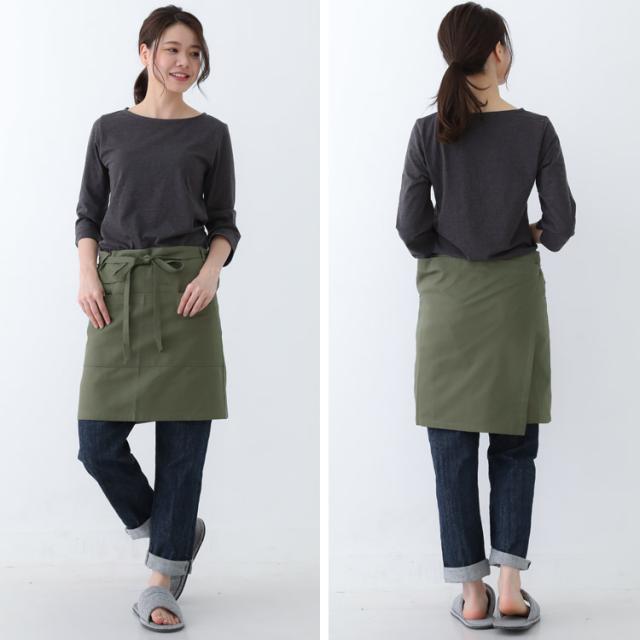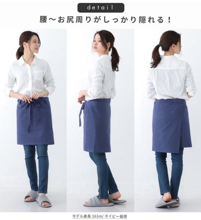 ミドル丈 腰巻き エプロン ワンピース エプロン カフェエプロン ショート丈 リボン 無地 ギフト サロン レディース ミドル ショート ギャルソン