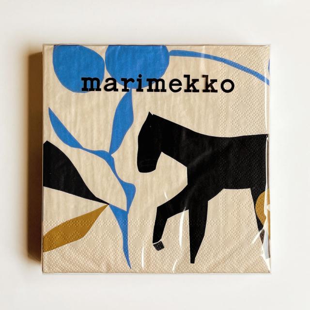 マリメッコ marimekko ペーパーナプキン 紙ナプキン ihr 20枚 967460 LAIDUN ライドゥン cream ベージュ+ブルー+ブラック系 北欧紙ナフキ