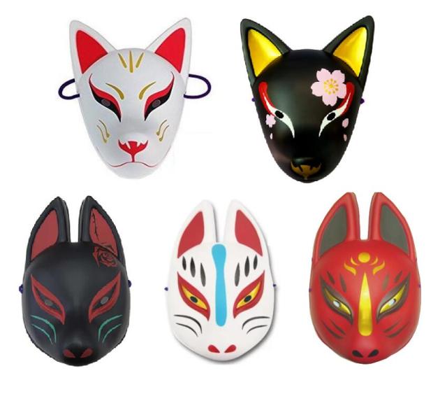 お面 妖狐5点セット ( 天狐 夜桜 半面/弐 半面 半面/参 ) きつね マスク コスプレ コスチューム 仮装 衣装 パーティー 正月 縁日 子供会