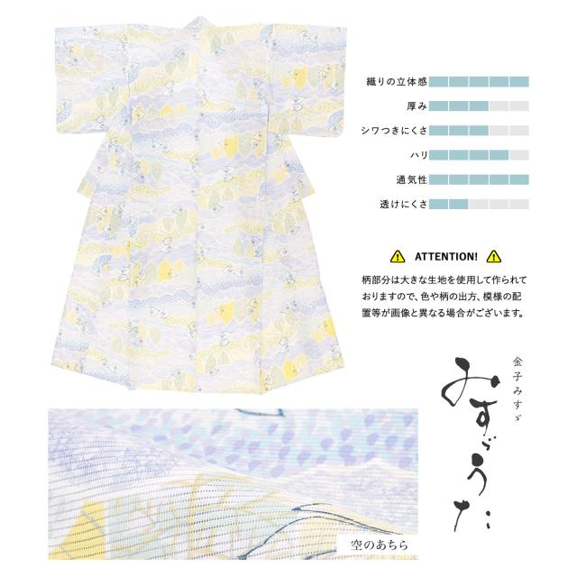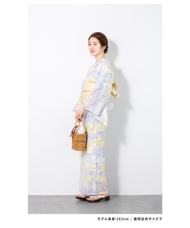 浴衣 セット レディース 浴衣セット 半幅帯 2023新作 大人 3点セット 金子みすゞ みすゞうた 空のあちら ライトネイビー 青系 クリーム フリー 送料無料