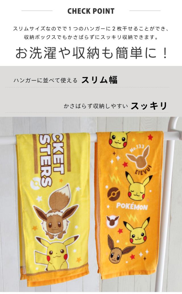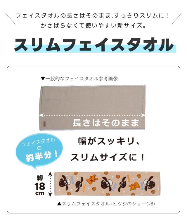 スリムな形で首にもかけやすい!子どもたちに大人気な「パウ・パトロール」「ポケモン」「ひつじのショーン」デザインのスリムフェイスタオルです。 一般的なフェイスタオルと長さは同じで幅が半分に! スリムになったことで1つのハンガーで2枚干せることができ、収納ボックスでもかさばらずにスッキリ収納できます。 おうちでもお出かけにもかさばらなくて使いやすく、運動や遊びにピッタリです♪