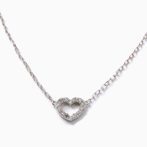 10金 ブレスレット K10 ホワイトゴールド 繊細チェーン シンプル ダイヤ入 オープンハート ハートチャーム レディース スライドチェーン