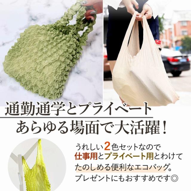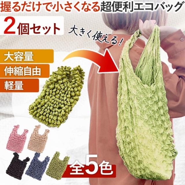 エコバッグ 2個セット 握るだけで小さくできる おしゃれ 大容量 トートバッグ 流行 エコ 折りたたみ 2個 セット 伸縮 コンパクト 絞りバッグ 無地 レジ袋 伸びる 使いやすい 色が選べる くしゅくしゅ 楽 買い物 バッグ ショッピング かわいい 推し eco agesugi_sfa