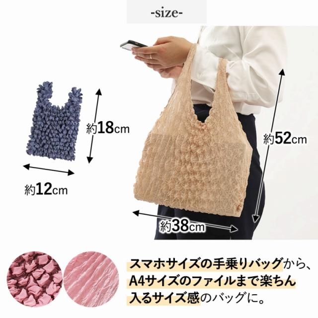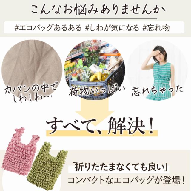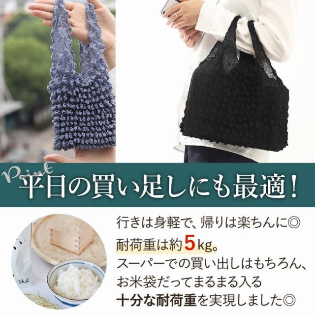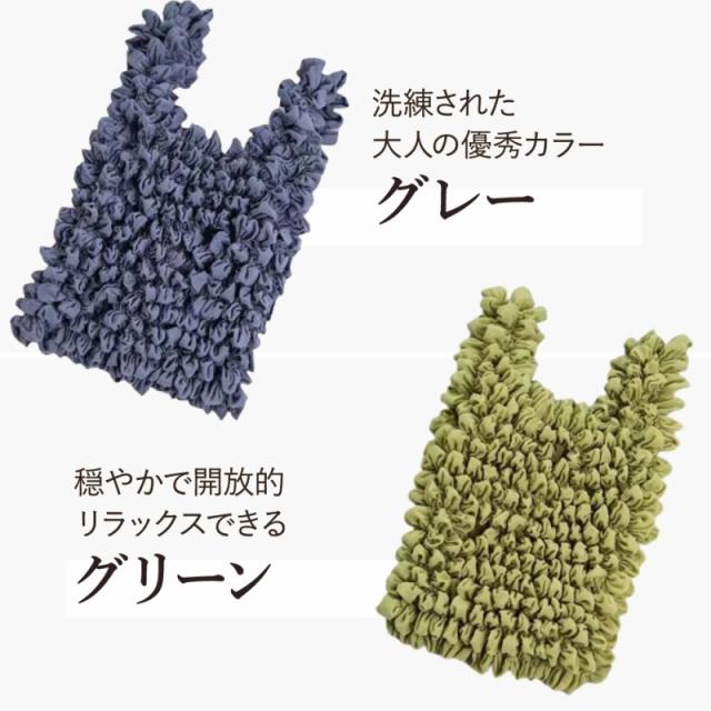 | 商品の説明 | 「きれいにエコバッグを折りたたんで、丁寧にしまって…。」 なんてことはもう必要ありません。 ぎゅっと握って丸めておけば、簡単手軽にかわいくなるおしゃれな絞り素材◎ 行きは身軽で、帰りは楽ちんに。 耐荷重は約5kg! スーパーでの買い出しはもちろん、お米袋だってまるまる入る十分な耐荷重を実現しました。 スマホサイズの手乗りバッグから、 A4サイズのファイルまで楽ちん入るサイズ感のバッグに。 ★選べる2色! 黒2色にしたり、ピンクとグレーを1色ずつ選んだり。 ファッションや好みに合わせてお出かけが楽しみになるカラー。 「折りたたまなくても良い」 コンパクトなエコバッグが登場! いつもの鞄に、さっとしのばせておくだけでいざというとき大活躍。 プレゼントにもおすすめです! |